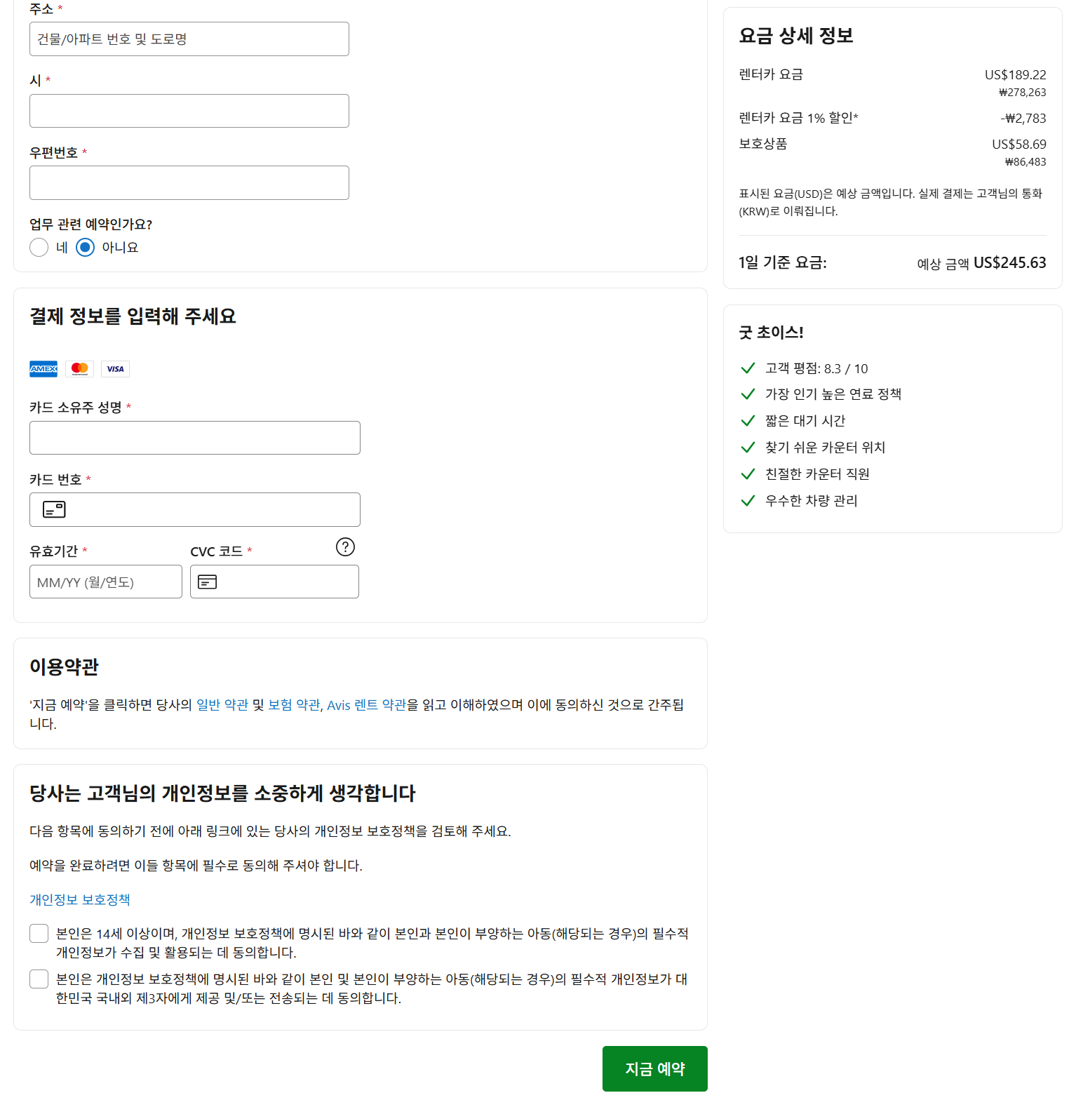 나는 그걸 차량 빌린 후 느꼈기 때문에 렌탈카스닷컴에서 보험가입을 했다.