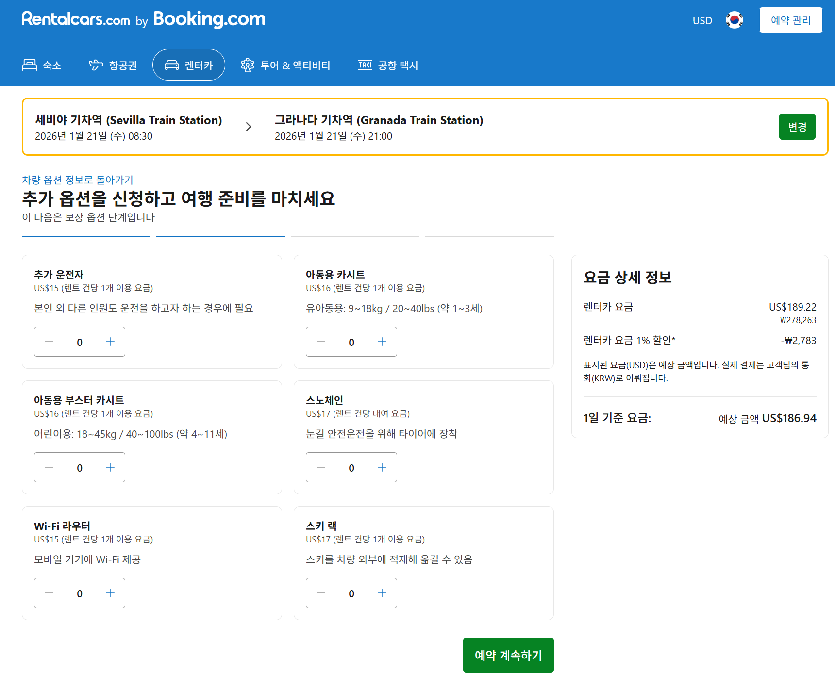 렌탈카스닷컴은 한국어지원이 되어서 더 쉽게 예약할 수 있었다.