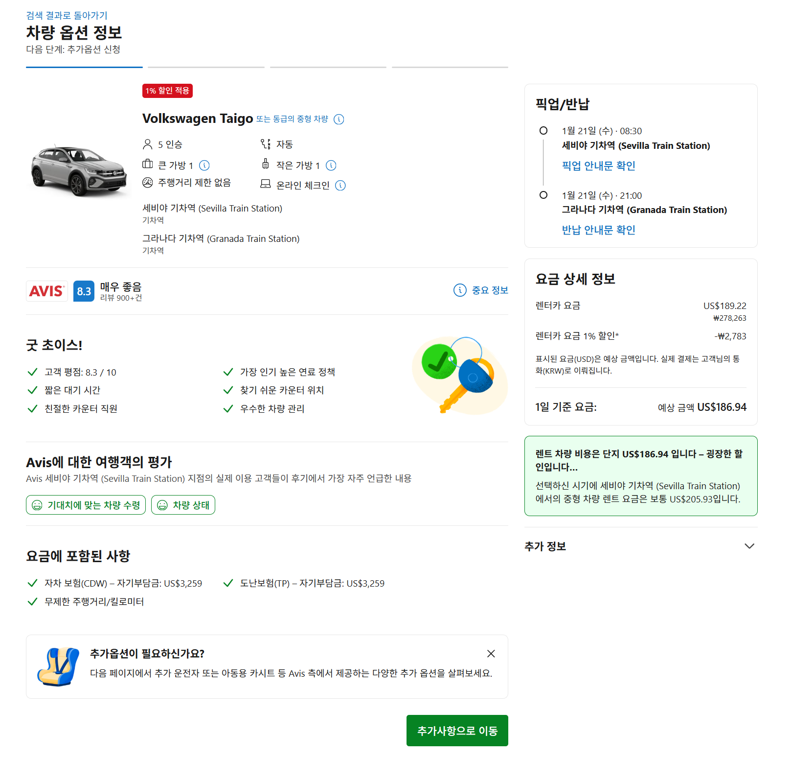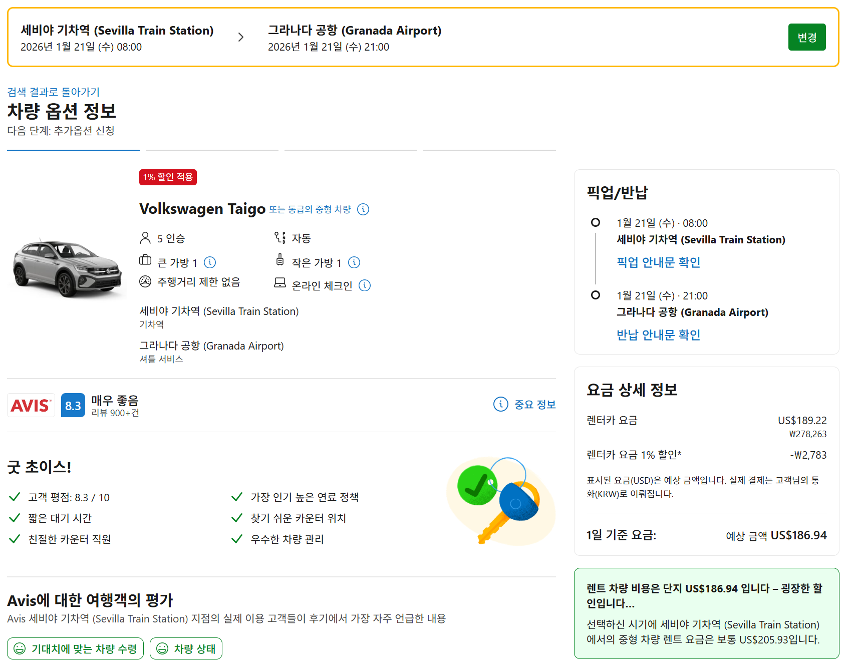 [포르투갈 리스본#19] 렌탈카스닷컴에서 세비야 픽업 그라나다 반납 렌터카 예약