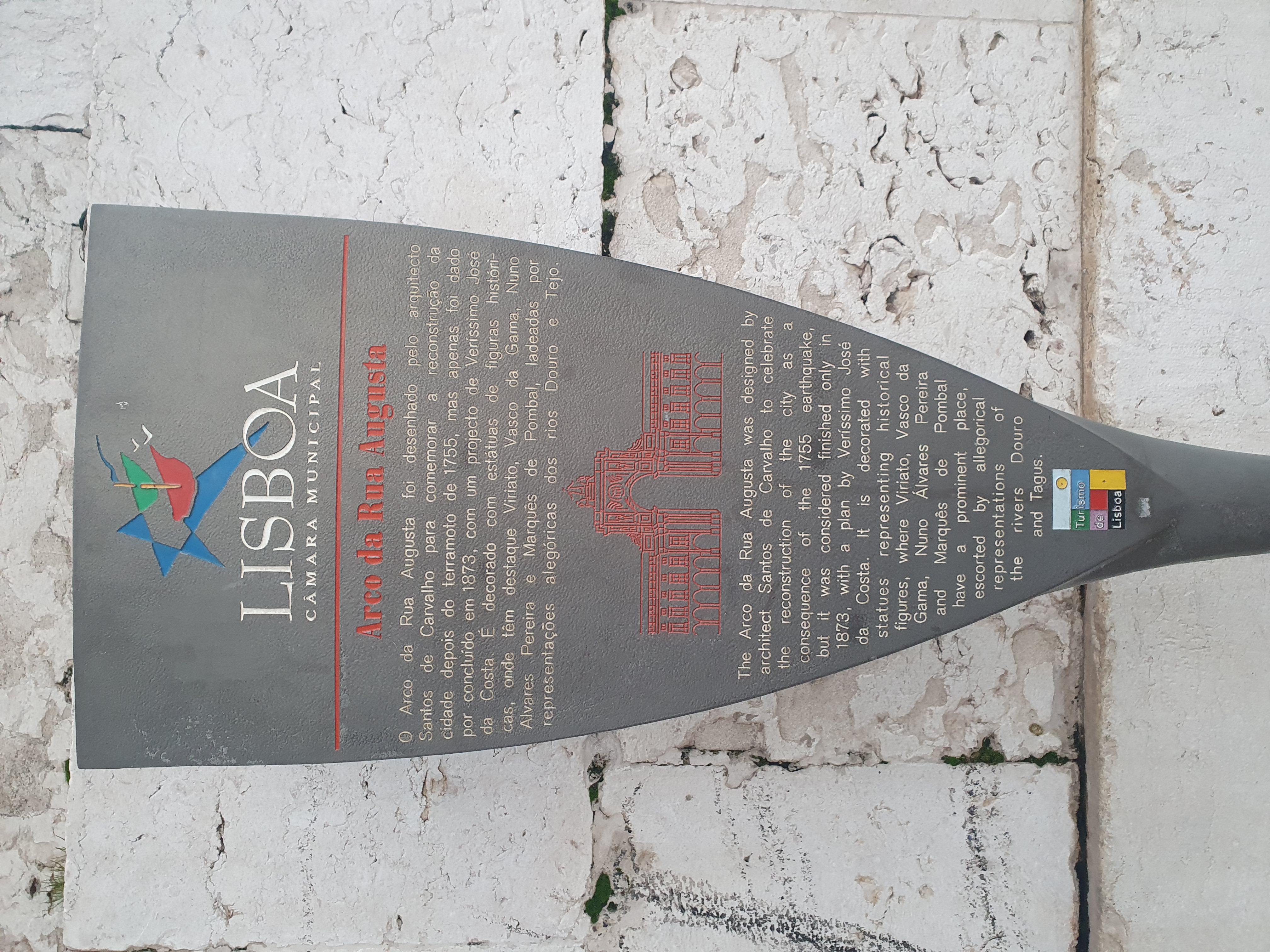 리스본 시청(Câmara Municipal)에서 만든 표지판으로 아우구스타 거리의 개선문(Arco da Rua Augusta)에 대한 정보를 담고 있다.