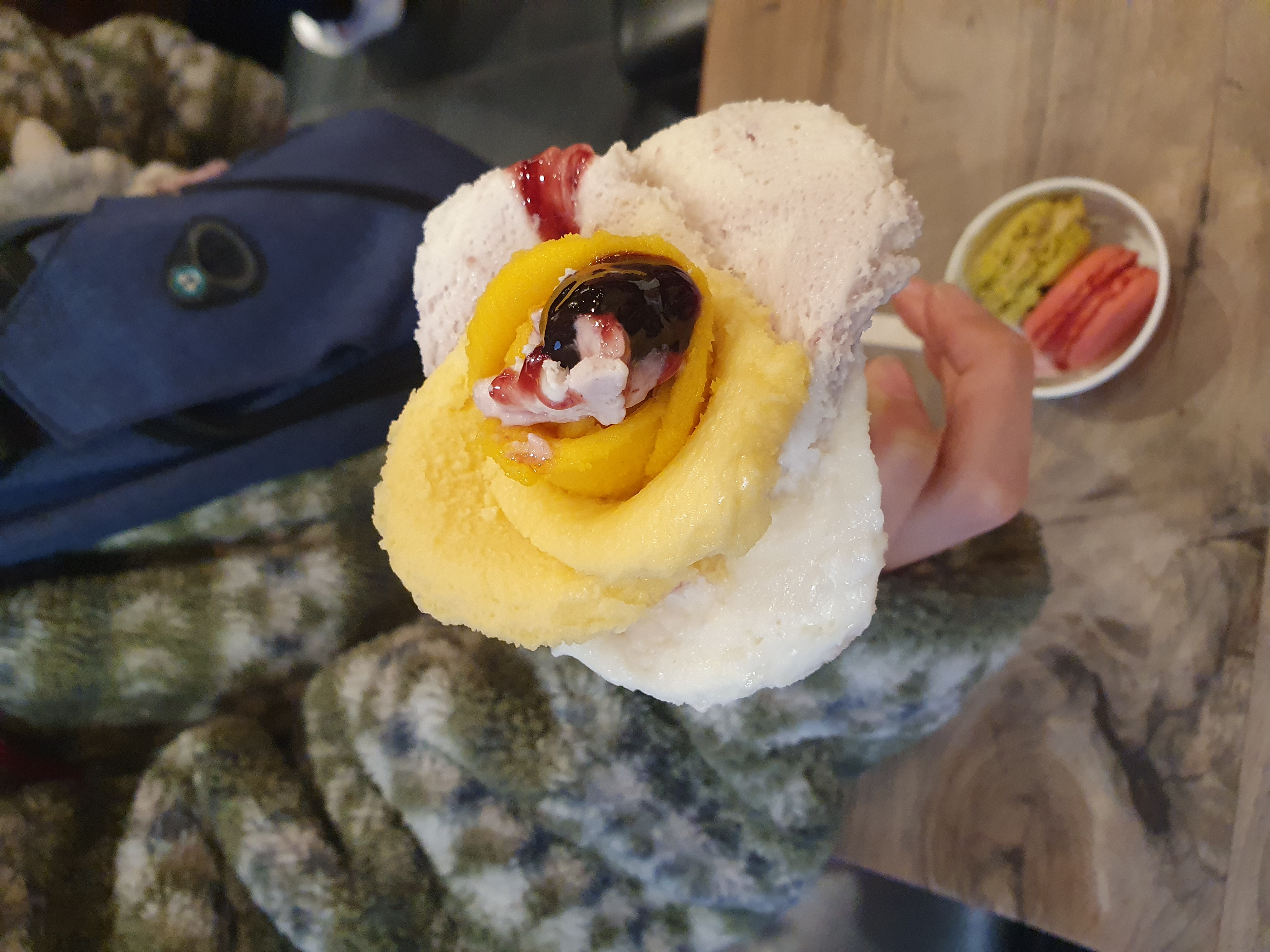 첫째는 마카롱 추가 했는데 위에 올려주지 않았는데, 부서진 마카롱까지 (이유는 모르겠지만) 2개를 주셨다.