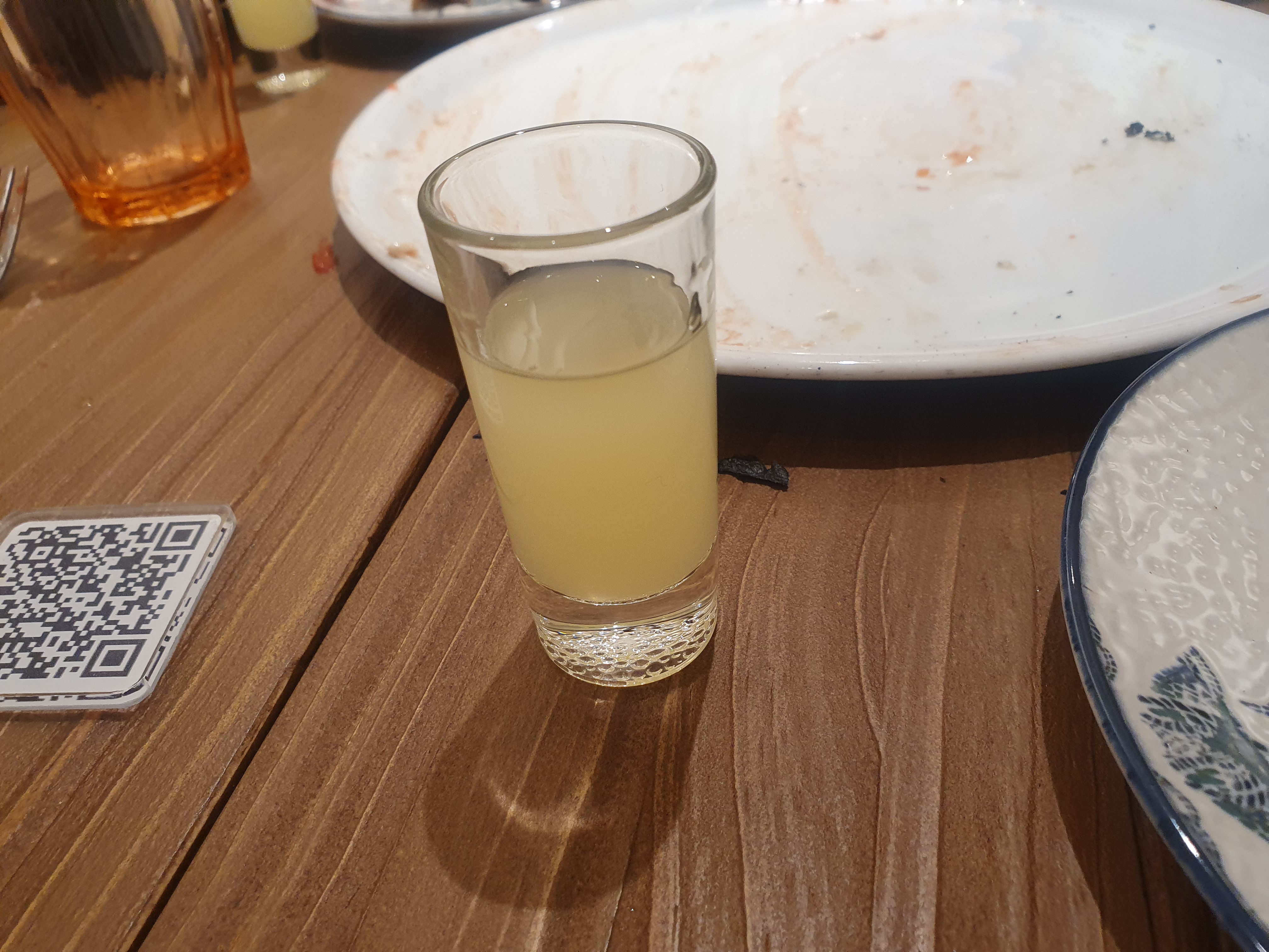 식사 후 제공되는 이탈리아의 전통 리큐어인 리몬첼로(Limoncello)로 무료로 준다.