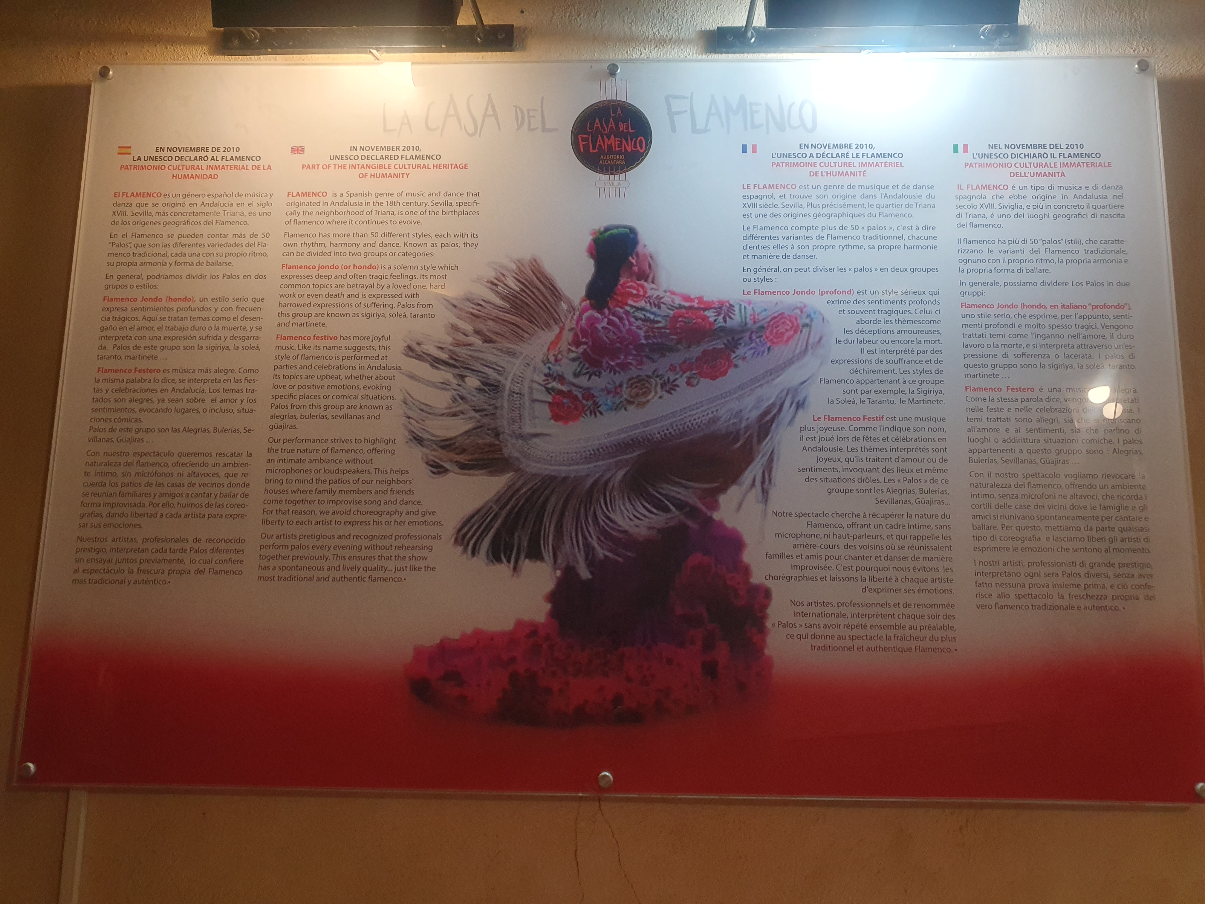 2010년 유네스코는 플라멩코를 인류 무형 문화유산으로 지정되었고, 플라멩코는 18세기 안달루시아에서 시작되었으며, 세비야의 트리아나 지역이 주요 발상지 중 하나이다.