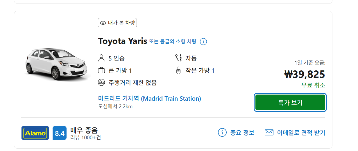 마드리드에 있을 때 가까이 있는 세고비아와 톨레도를 가기 위해 렌터카를 이용해야 해서 예약을 했다.