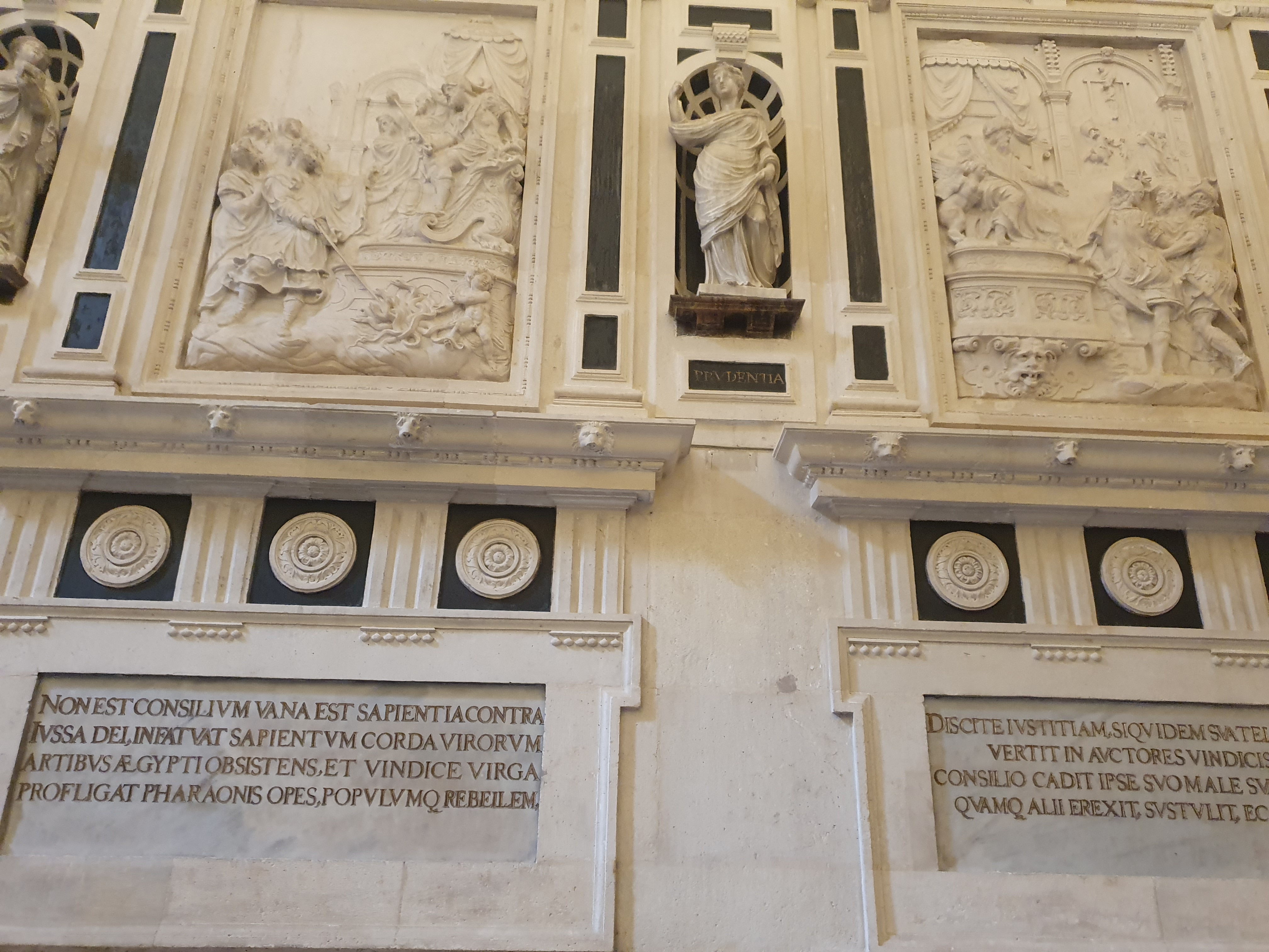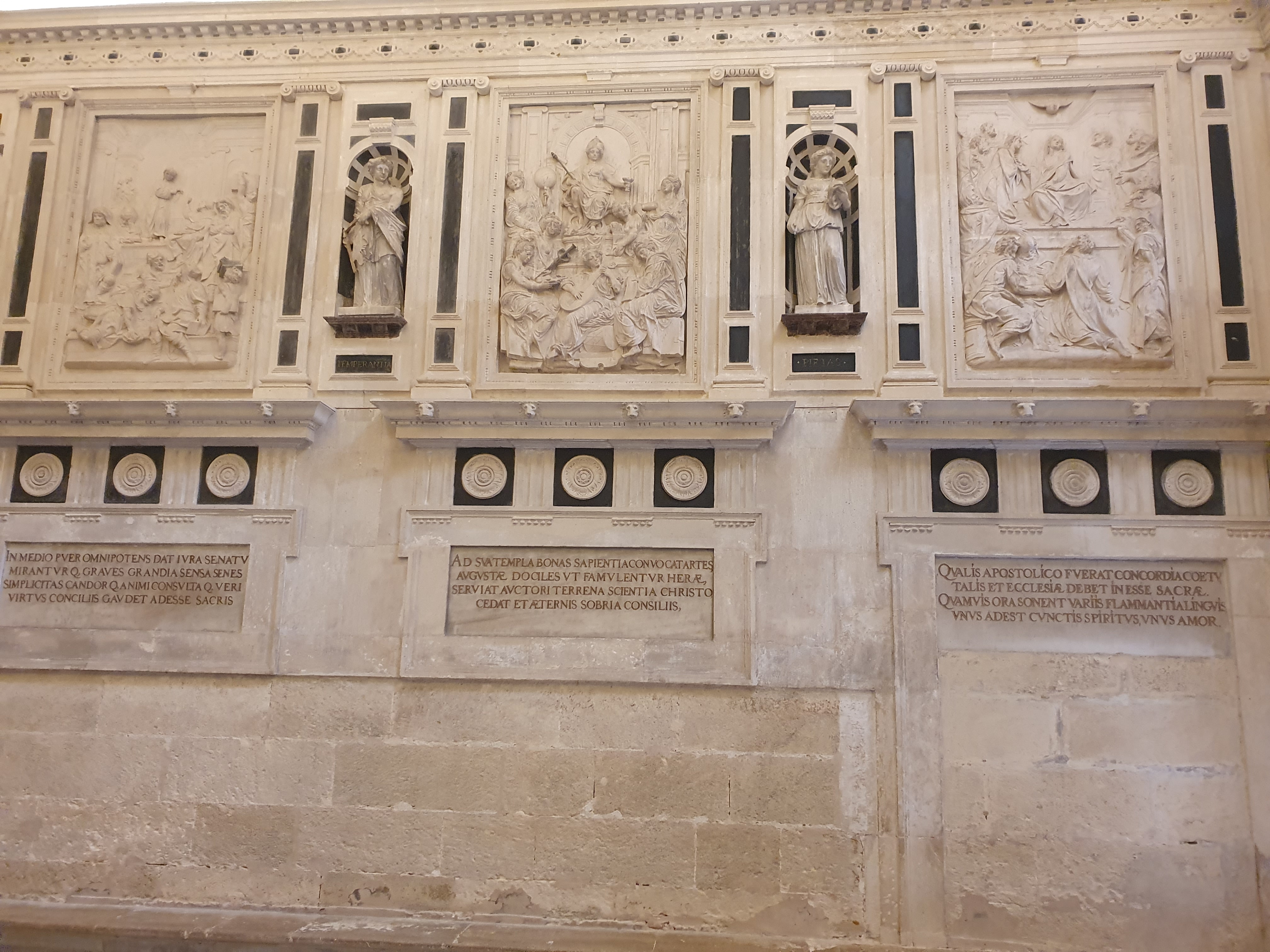 부조는 덕목(virtues)과 관련된 장면, 사도 요한의 묵시록 장면 등을 묘사하고 있다.
