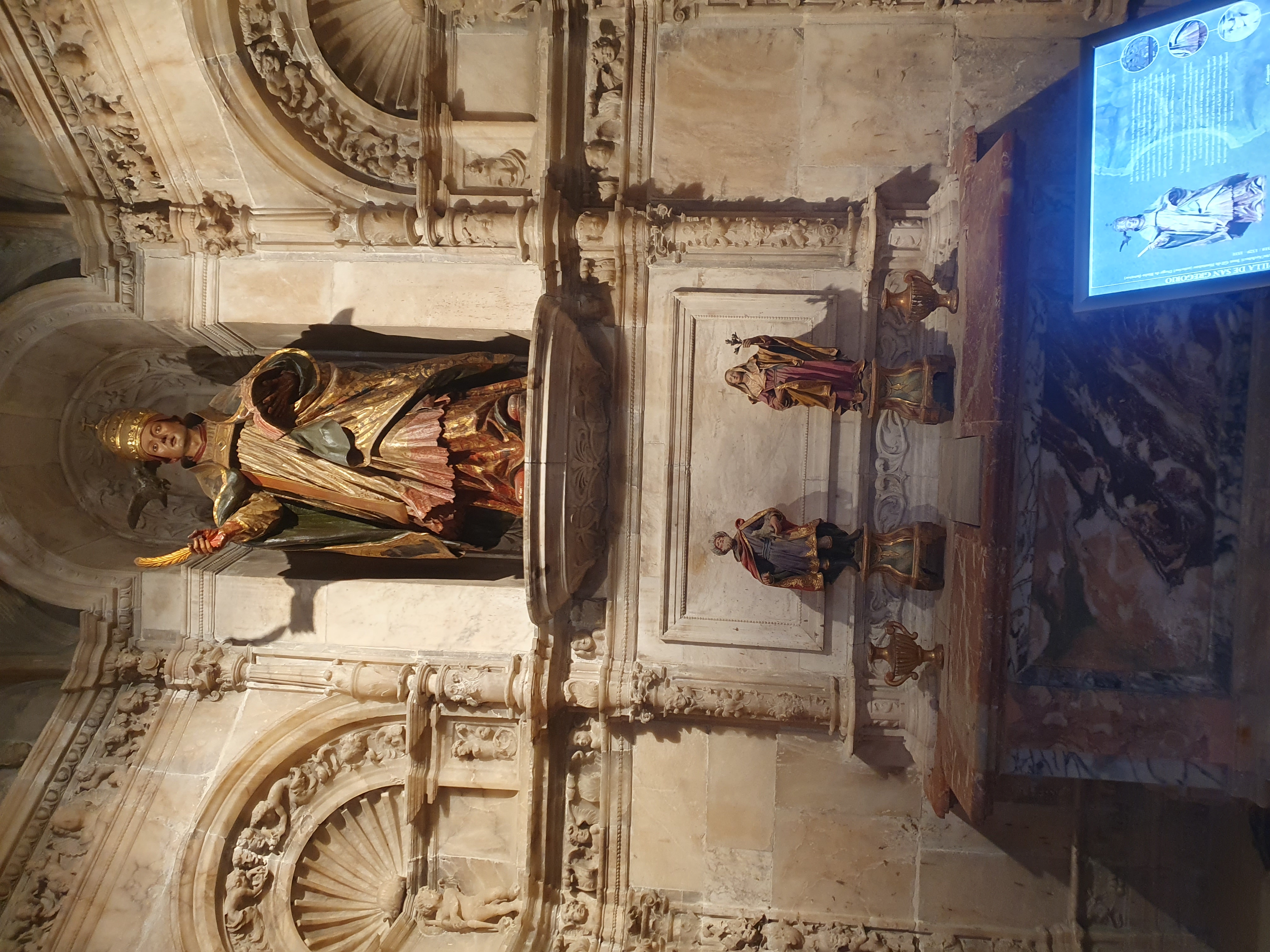 감실 중앙에는 교황의 복장을 하고 교황관(Tiara)을 쓴 성 그레고리오 대교황(San Gregorio Magno, 그레고리오 1세)의 성상이 모셔져 있다.