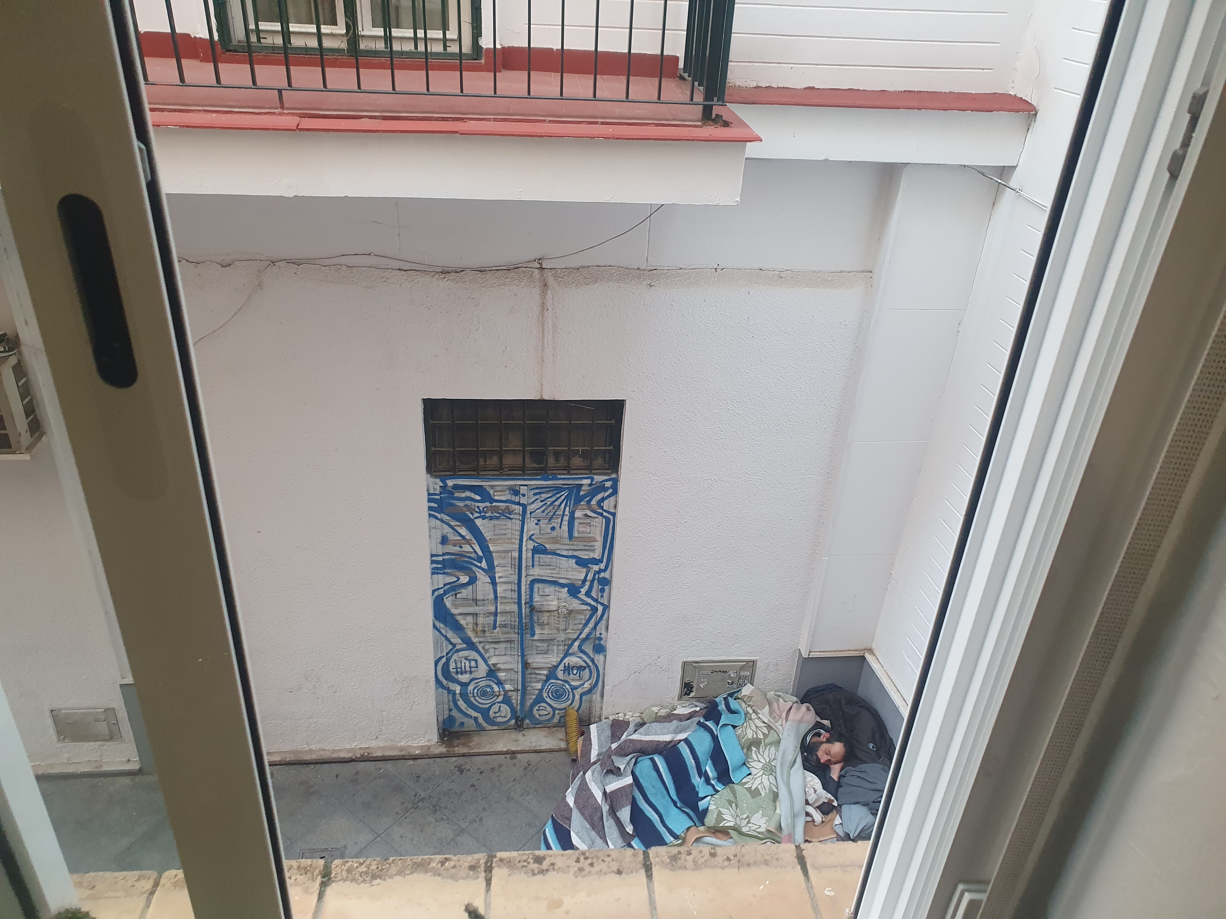 숙소에서 일어나서 창밖을 보니 노숙자 분이 자고 계셔서 깜짝 놀랐다.