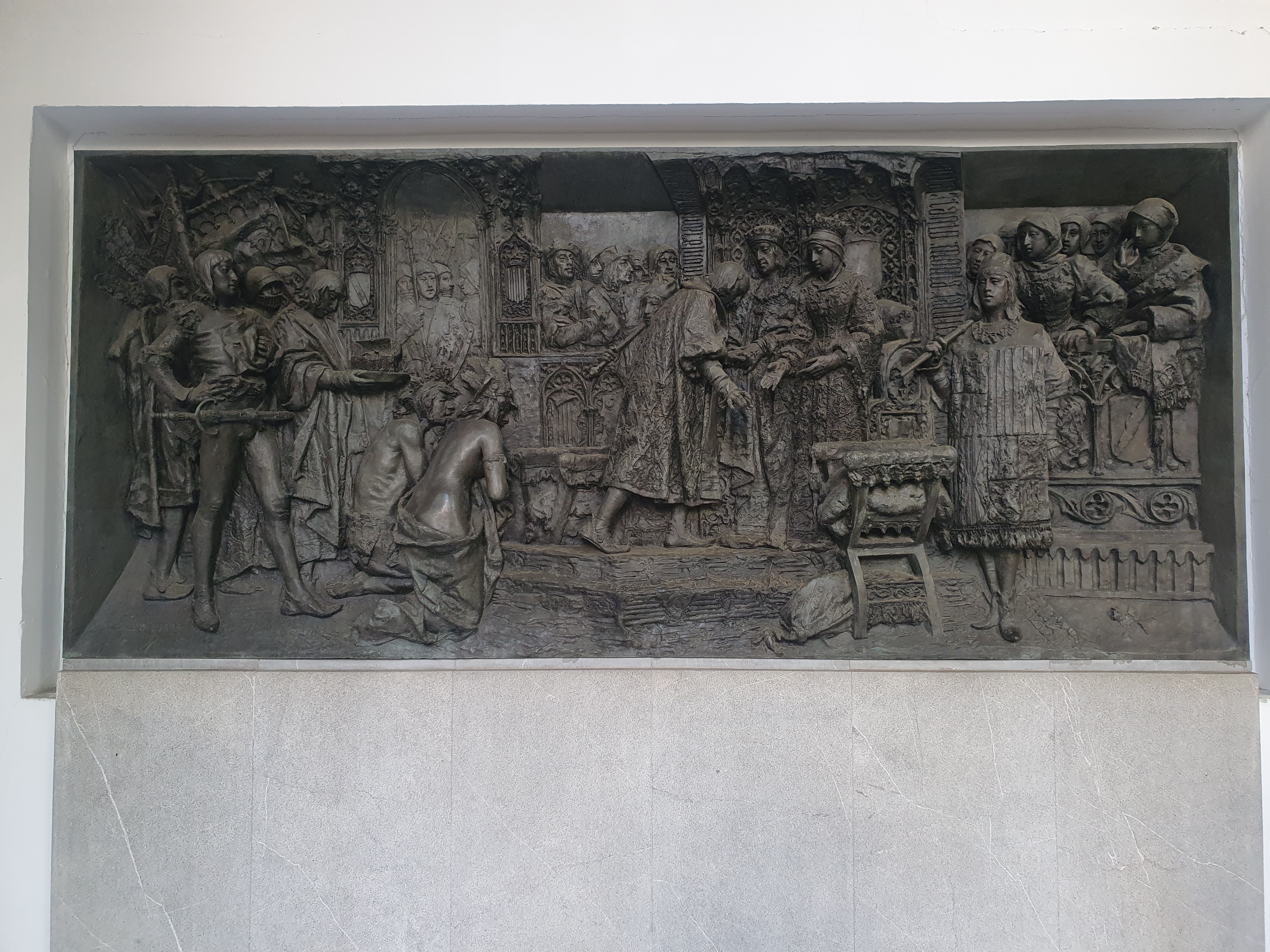 스페인 조각가 안토니오 수시요(Antonio Susillo)의 <콜럼버스가 가톨릭 군주에게 알현하는 모습>