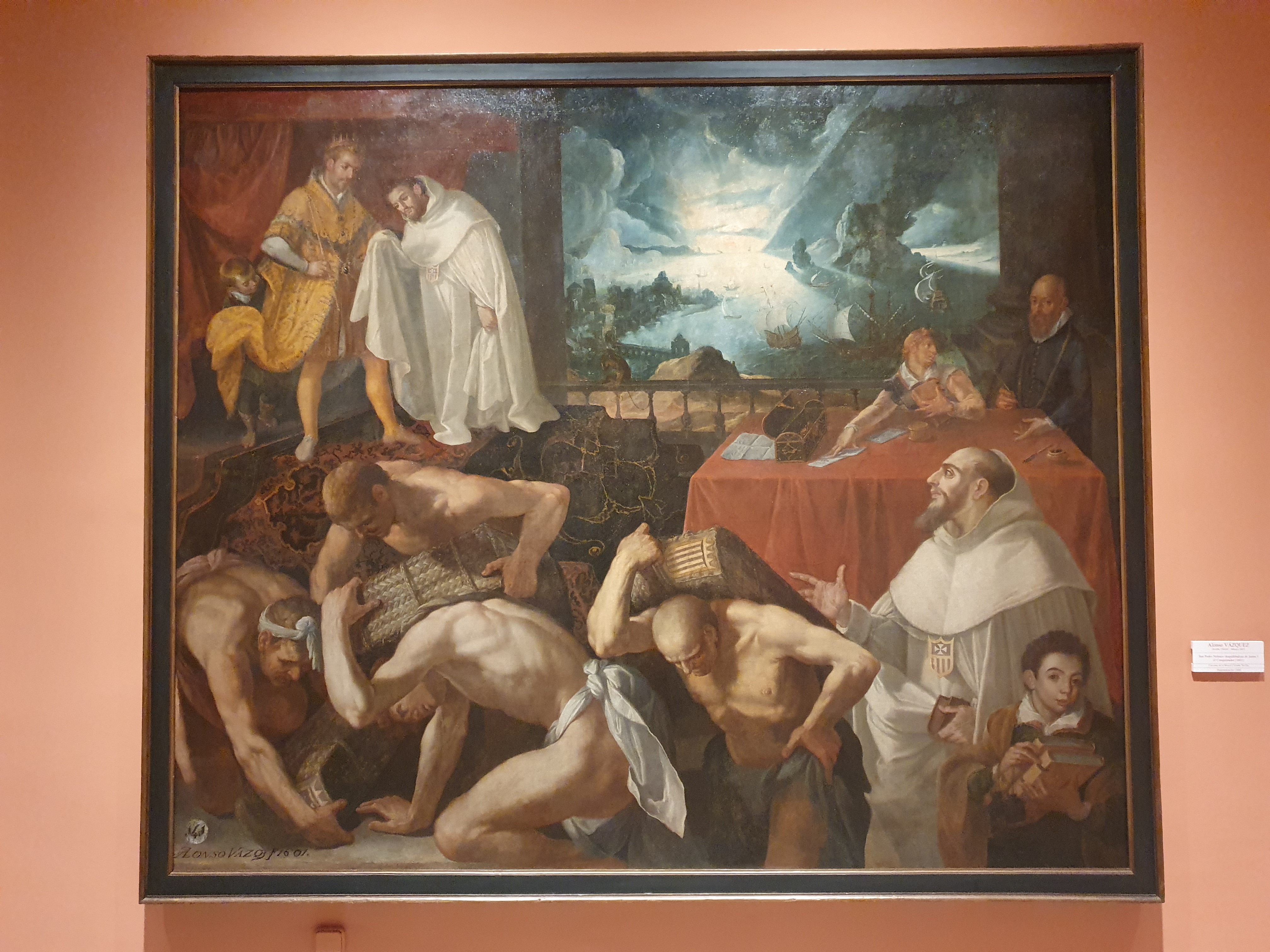 알론소 바스케스(Alonso Vázquez)가 1601년경에 그린 유화 **'산 페드로 놀라스코와 정복왕 하이메 1세의 작별' 배에 타기 위해 짐을 나르는 건장한 인부들과 산 페드로 놀라스코 성인과 왼쪽 상단에는 성인이 메르세데스 수도회의 공동 창립자인 아라곤의 정복왕 하이메 1세와 작별하는 모습이 담겨있다.