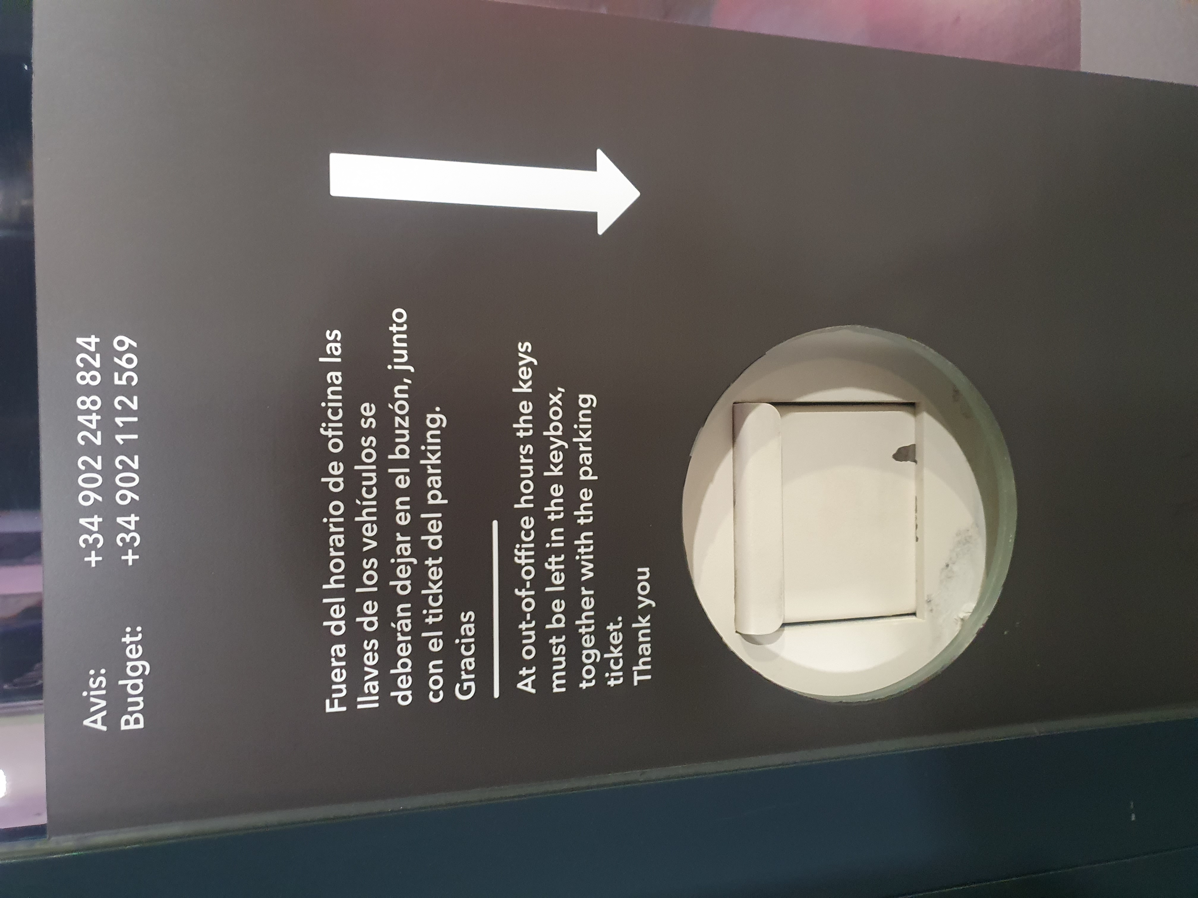 차량을 그라나다 기차역 아비스구역에 주차하고, 차량 키와 주차권을 저 곳에 넣어라.