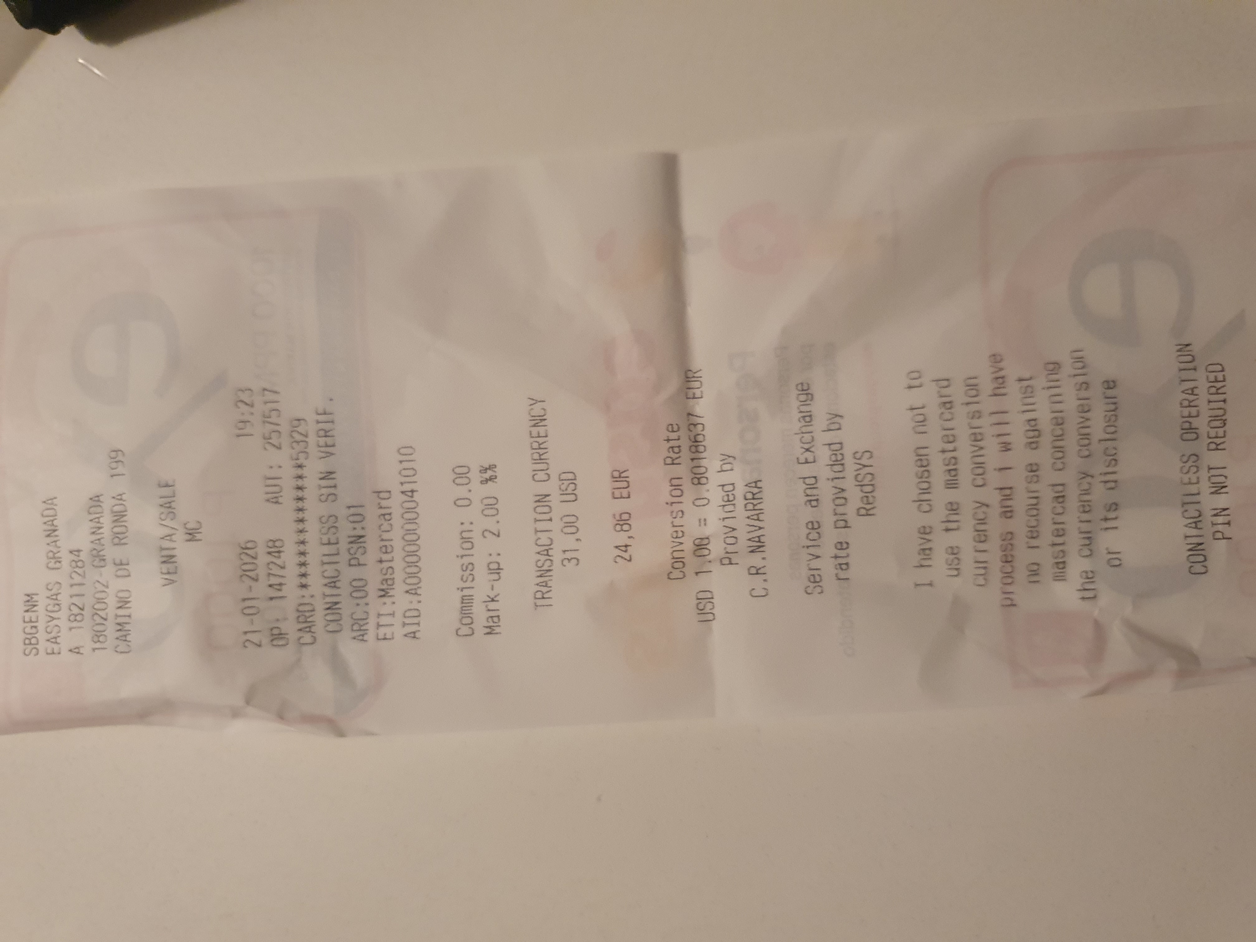 차량 반납 전 주유를 가득 채웠다. 24.86유로