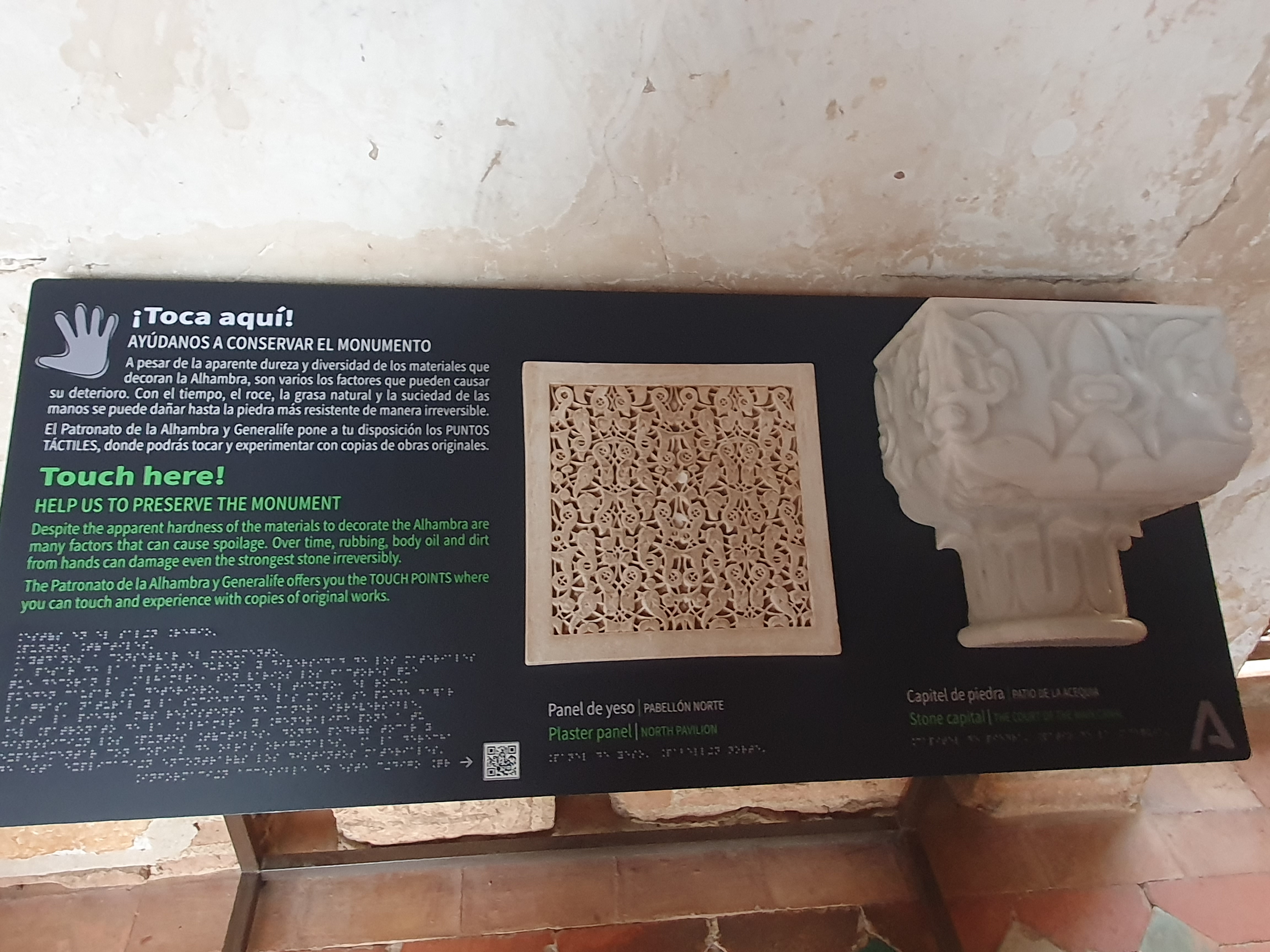 알함브라 궁전 벽면의 석고 조각품 복제품을 설치하여 이 곳에서 직접 만져볼 수 있도록 해 놓았다.