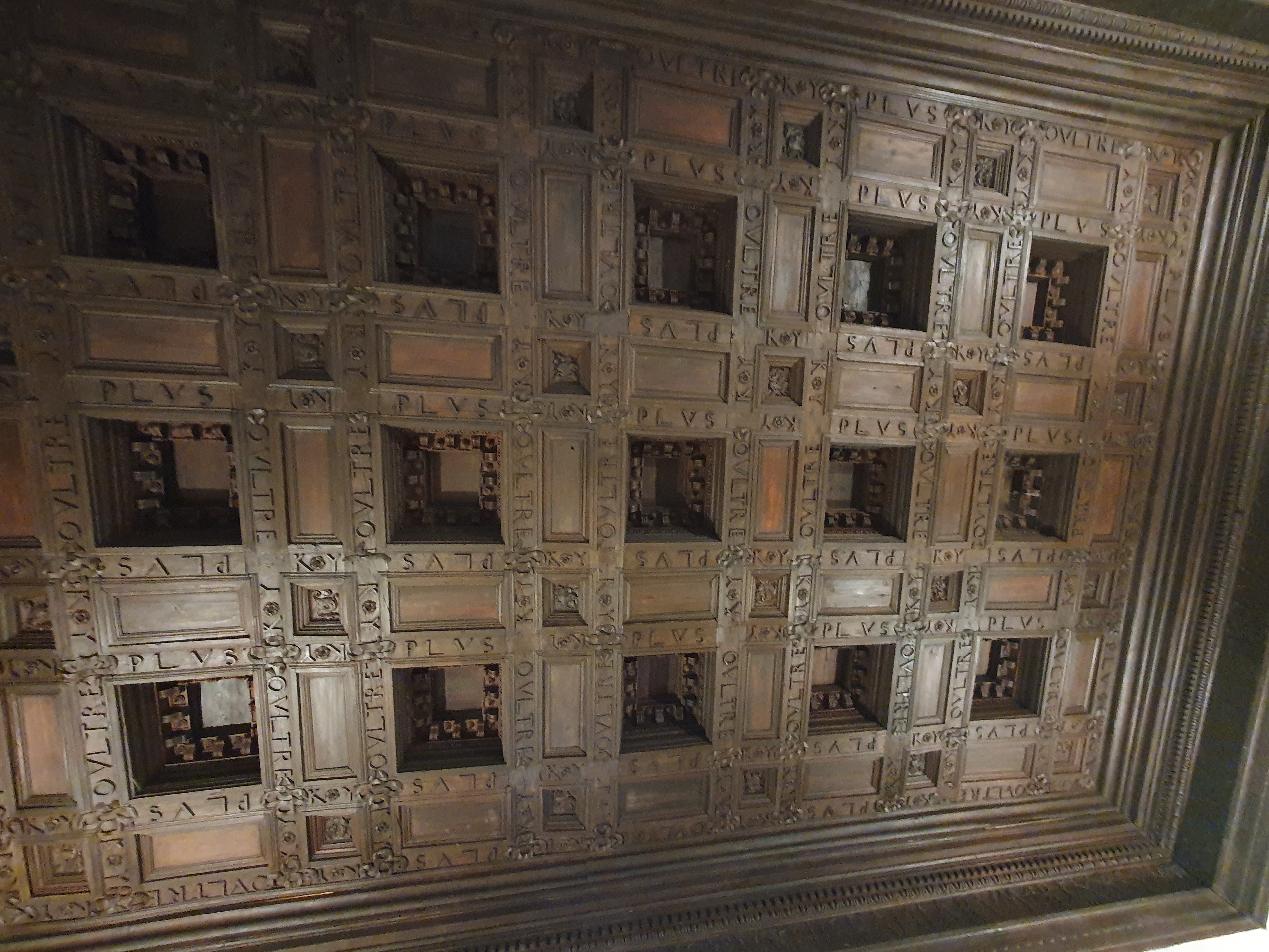 천장에는 합스부르크 왕가의 모토인 "PLVS OVLTRE" (라틴어로 "저 너머로"라는 뜻)가 새겨져 있다.