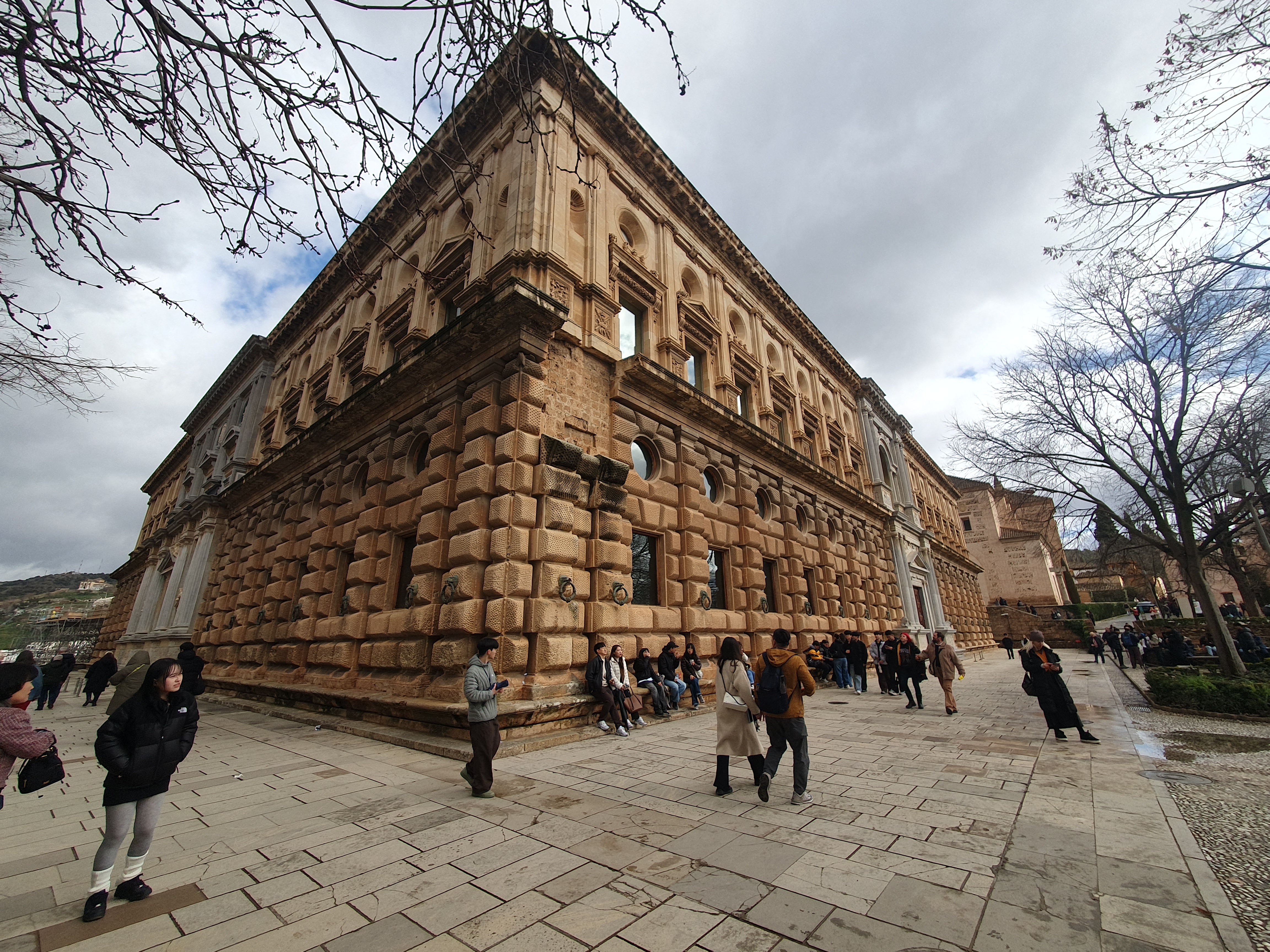 16세기 스페인 국왕 카를로스 5세가 신혼여행 중 알함브라 궁전에 감명받아 건설을 결정한 르네상스 양식의 건물이다.