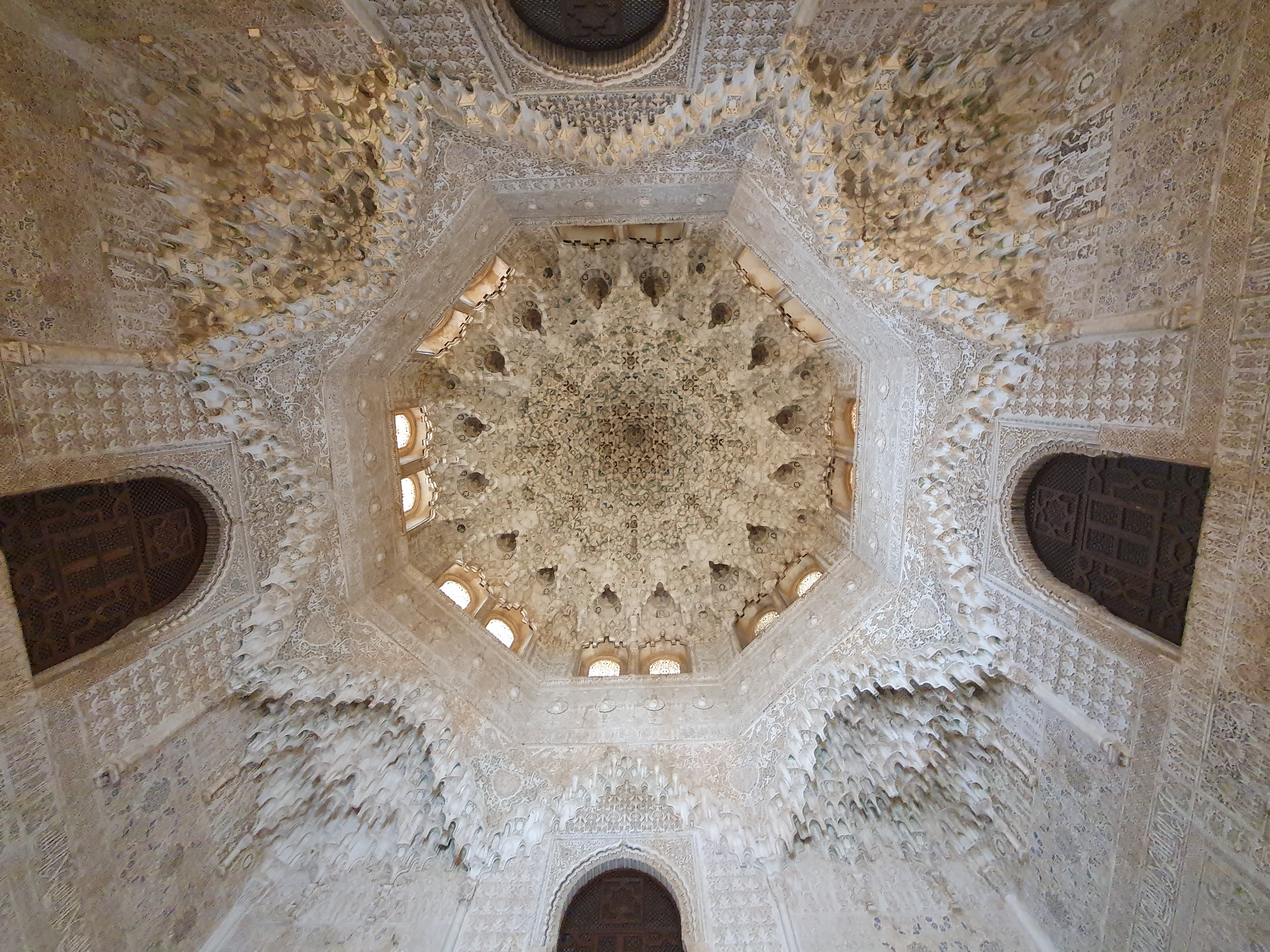 1. 모카라베(Mocarabe): '종유석' 또는 '벌집' 모양의 장식적인 볼트(vault) 구조로, 돔이나 아치 천장을 장식하는 데 사용된다. 빛의 반사에 따라 신비로운 분위기를 연출하며, 특히 '두 자매의 방'이나 '아벤세라헤스의 방' 돔에서 그 정수를 볼 수 있다.