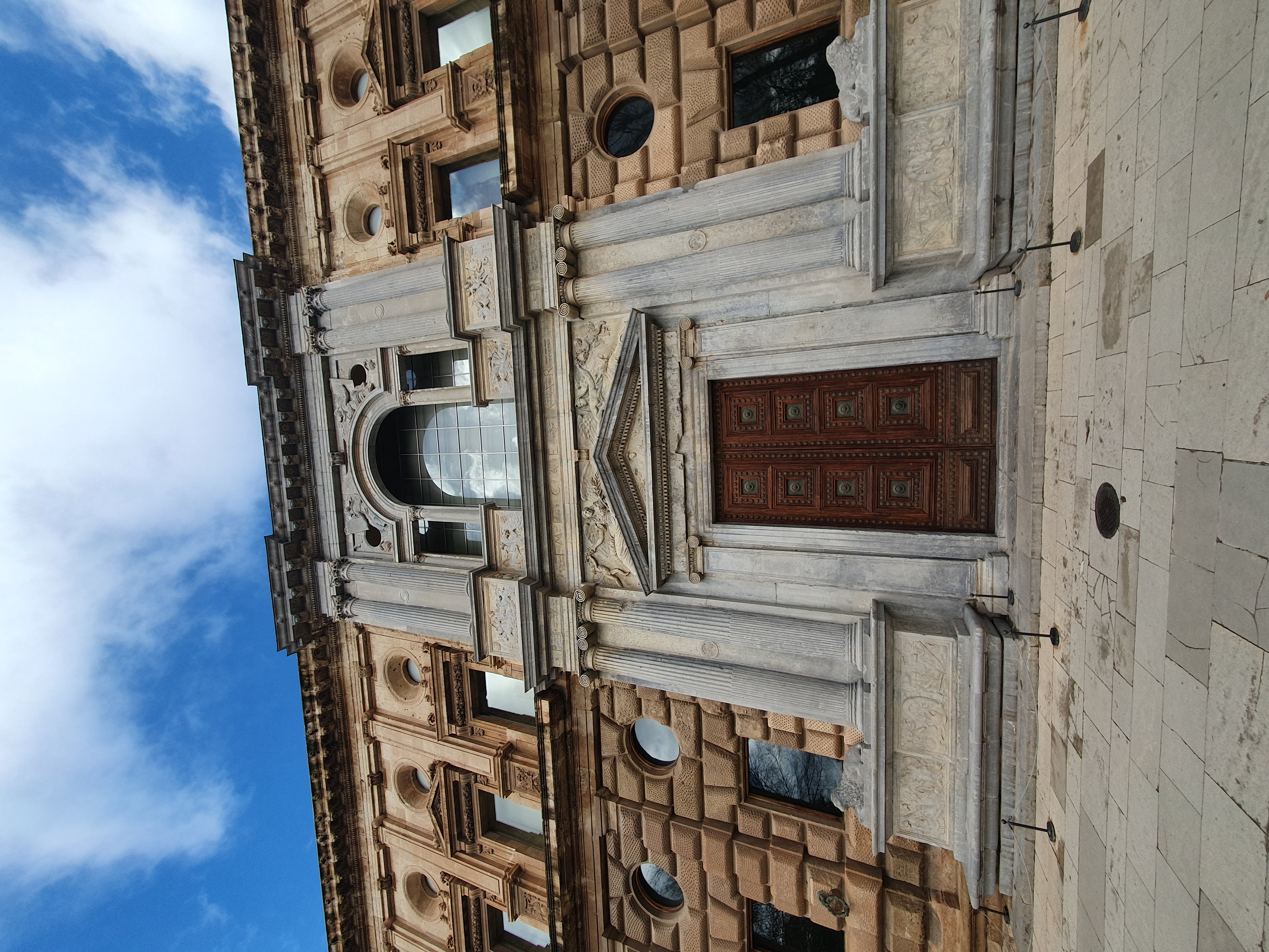 기둥과 그 주변은 르네상스에서 선호하는 밝은 회색의 대리석을 사용했다.