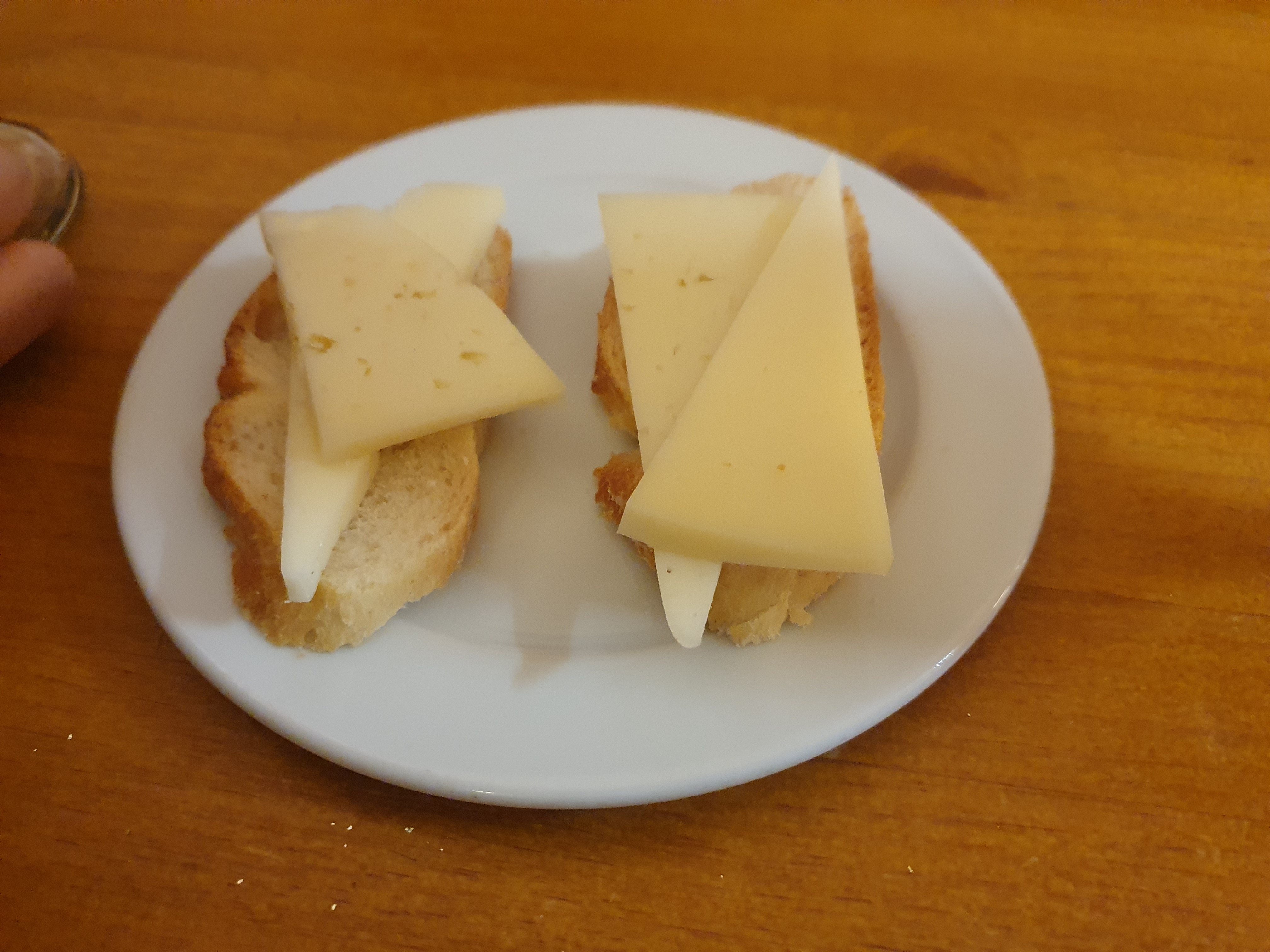 음료 주문하면 나오는 타파스는 바게트에 치즈 올려진 것으로 간단하게 나온다.