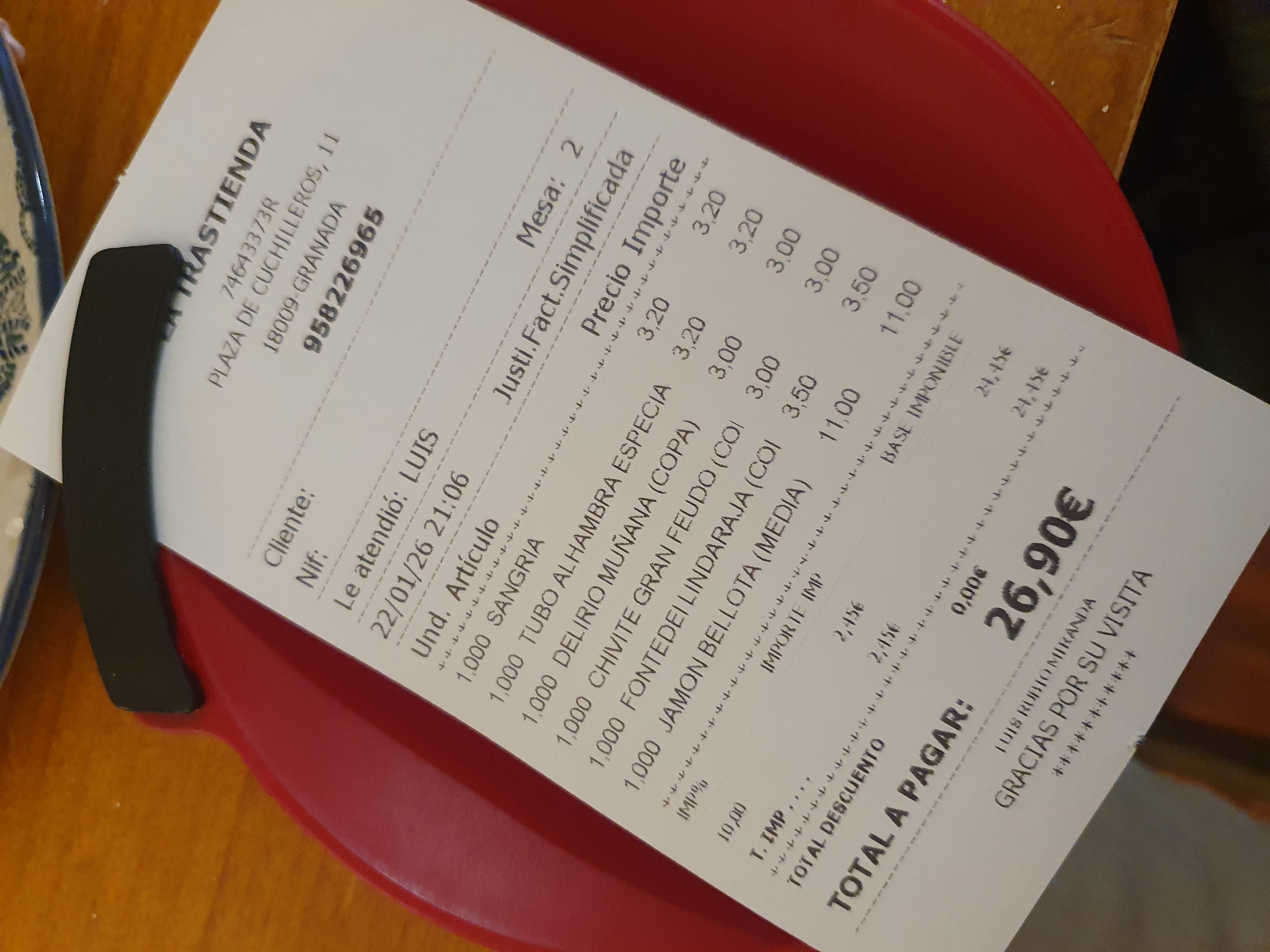 2026.01.23 - [해외/스페인,포르투갈(26년)] - [스페인 그라나다#2] 그라나다 타파스 바 라 부에나 비다(La Buena Vida)에서 저녁