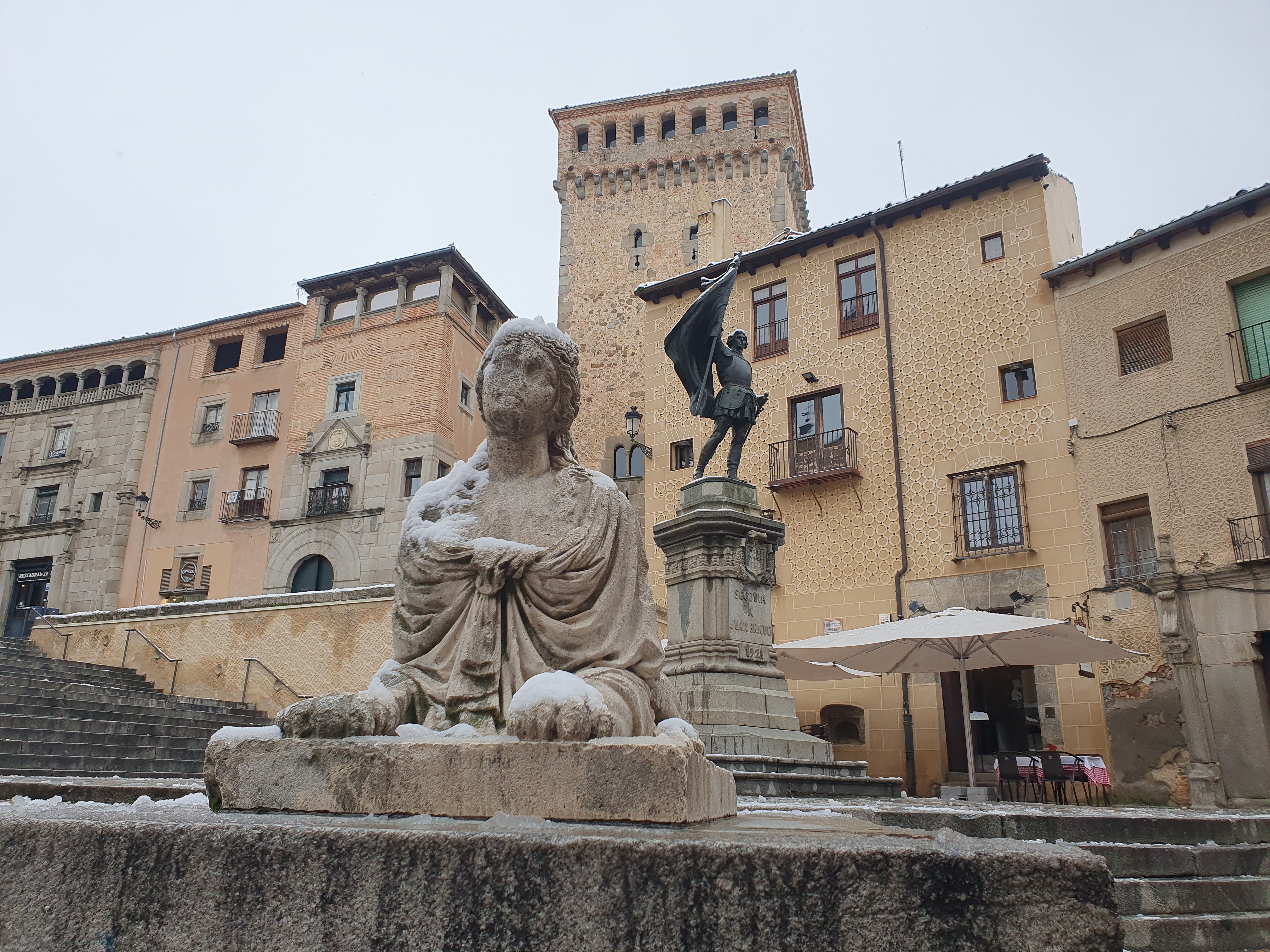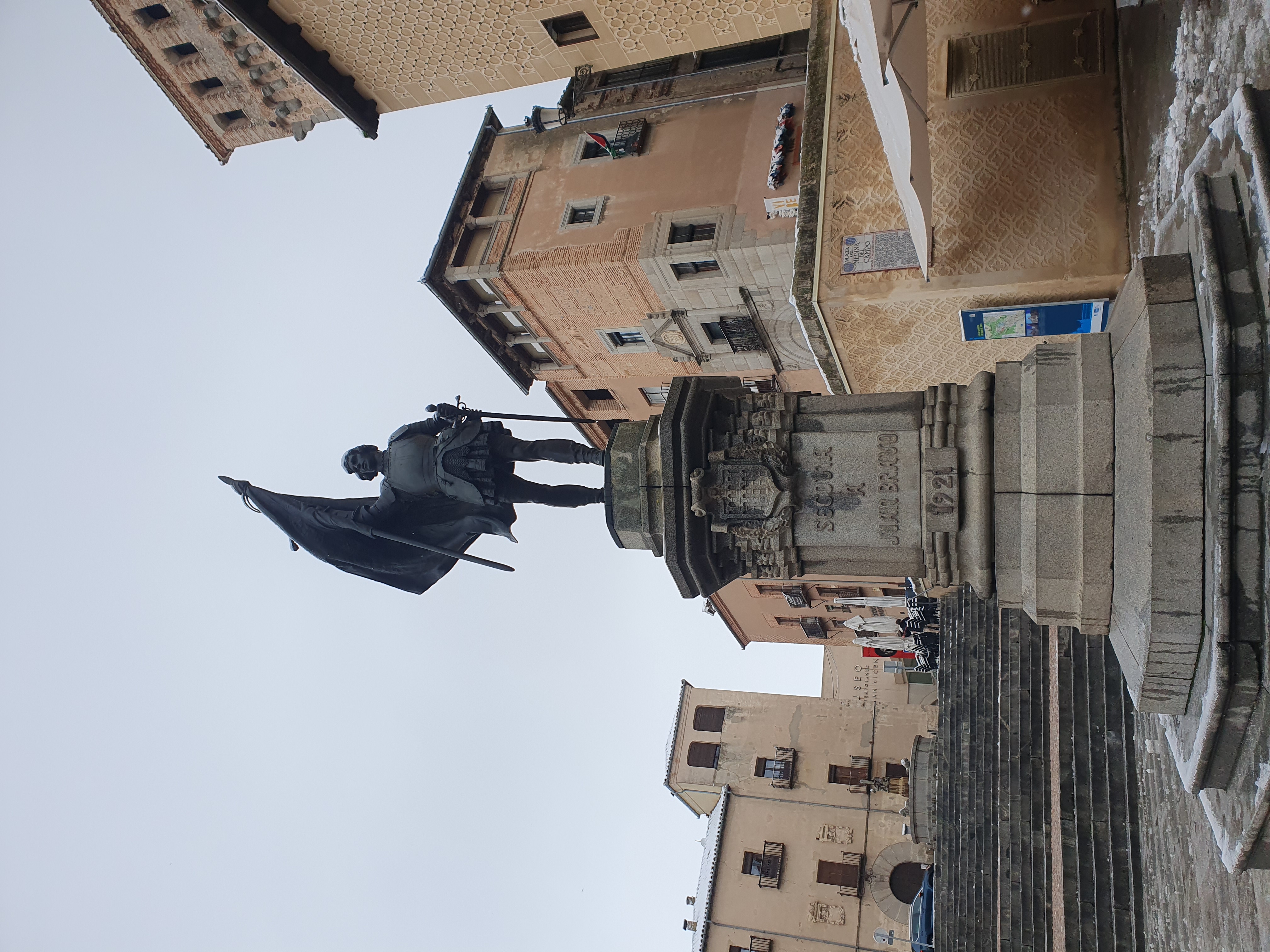 깃발을 들고 있는 동상은 16세기 카스티야 코무네로스 반란의 주요 지도자 중 한 명인 후안 브라보(Juan Bravo)의 동상으로, 이 동상은 그의 사망 400주년을 기념하여 1921년에 세워졌다.